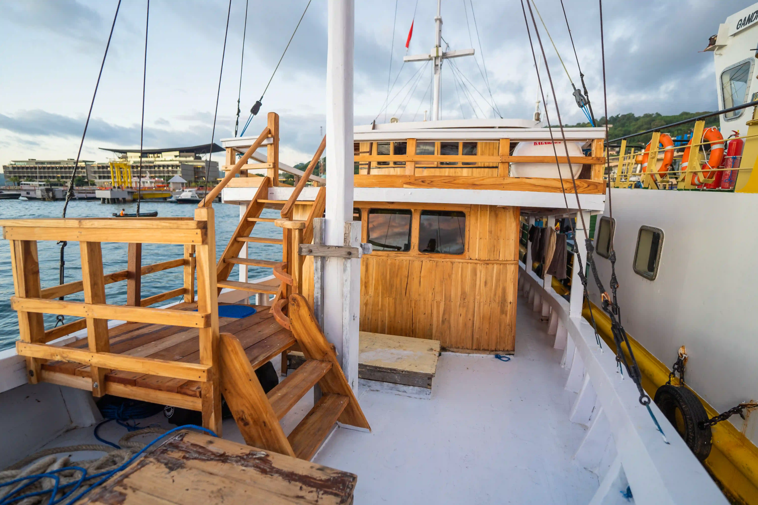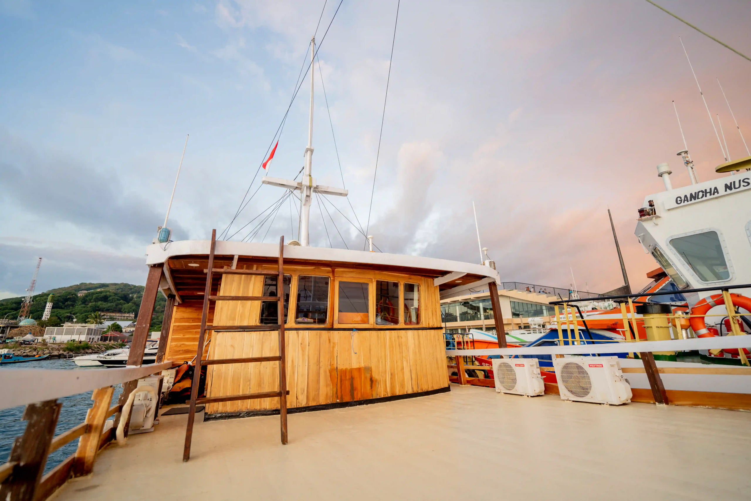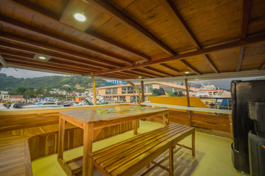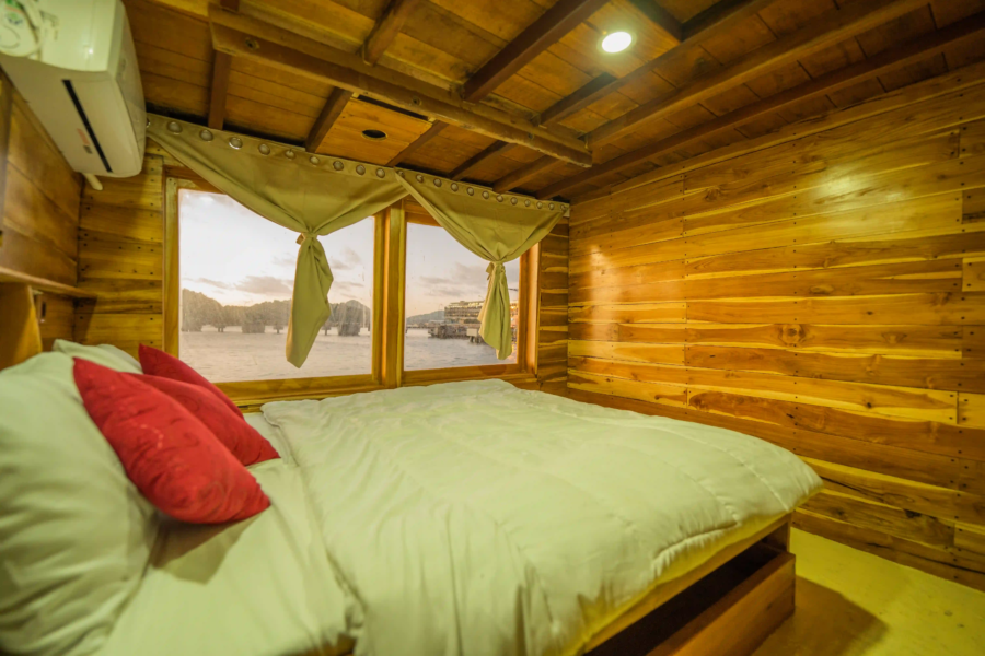 Each of the 6 cabins are equipped with air conditioning and 2 private bathroom + 2 shared bathroom capacity 20 – 22 Pax